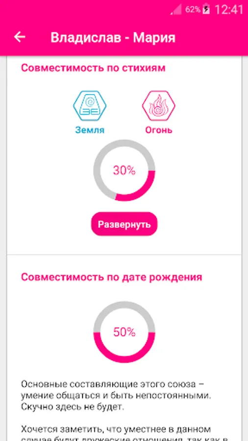 Compatibility of the signs of the zodiac has a fairly large history and is quite common, many of us have heard what the compatibility horoscope is, but in addition to the compatibility of signs, the "compatibility in love" application also calculates the compatibility of the elements.