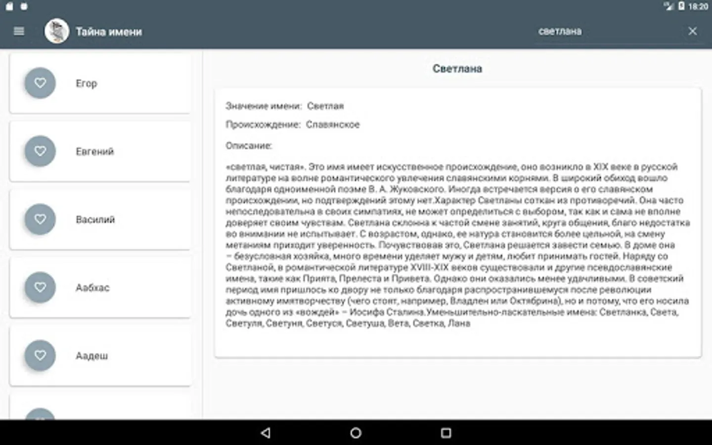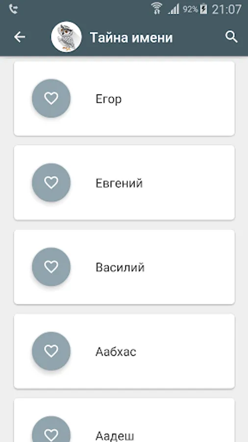 Desired names can be added to favorites.