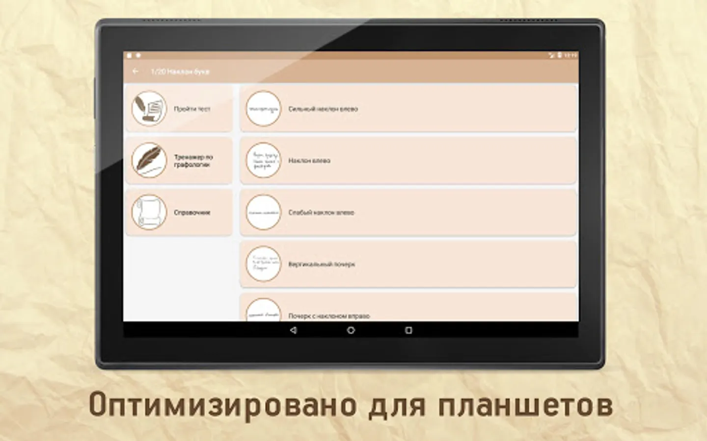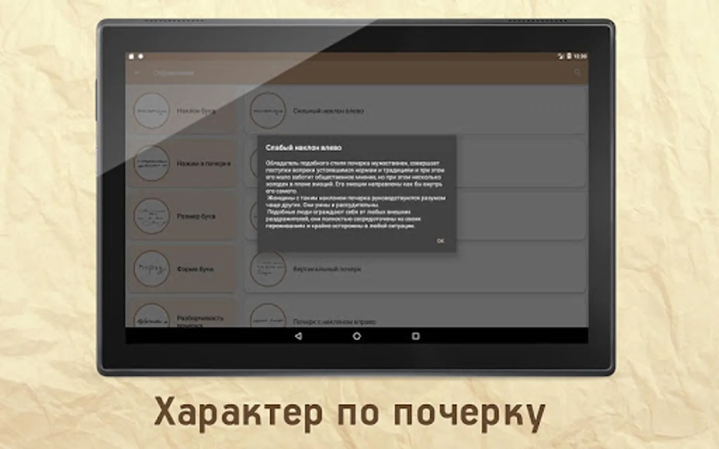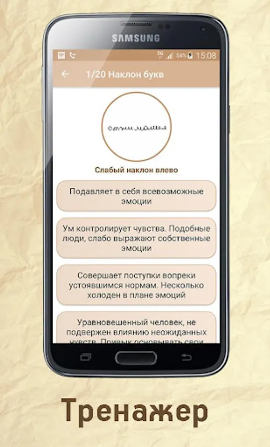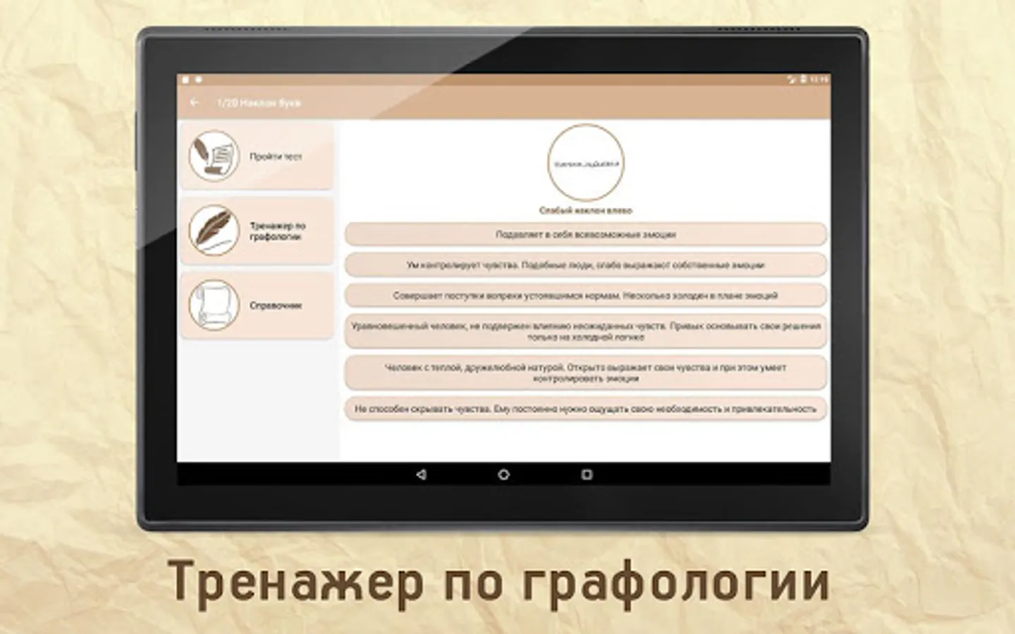 Simulator on graphology. It will help you to effortlessly master the basic elements of graphology.