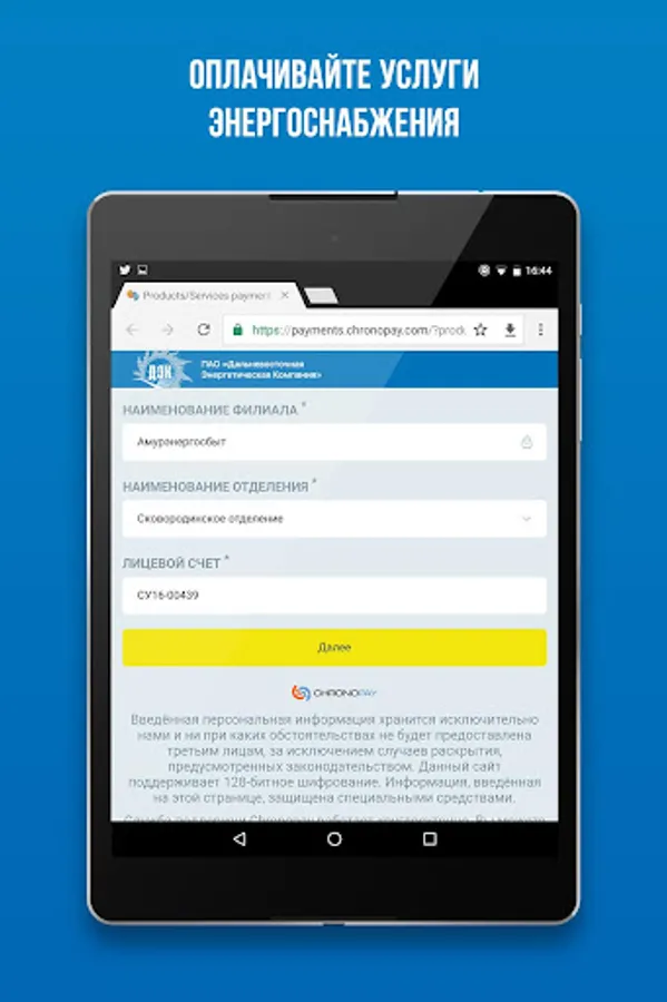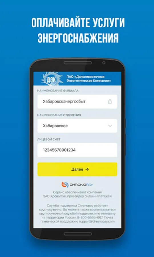 All comments and suggestions on the operation of the mobile application, please send through the Internet reception of PJSC "DEK" at the link: https://www.dvec.ru/dalsbyt/private_clients/priemnaya/