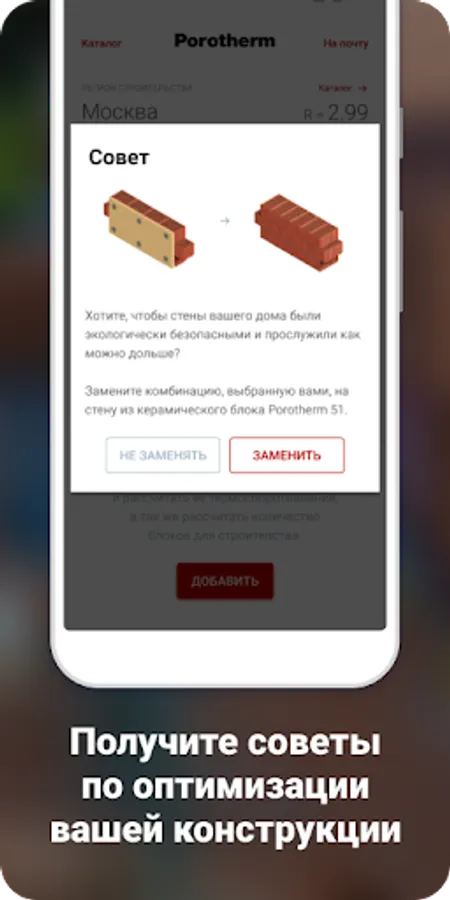 The ability to choose not only wall material, but also options for finishing and additional insulation, turns the Porotherm Calculator into a very flexible tool for very accurate preliminary calculations.