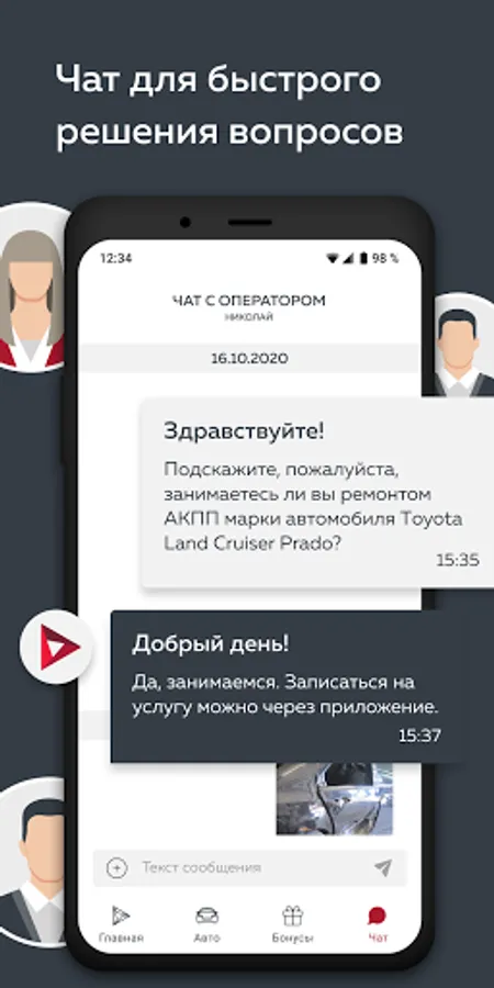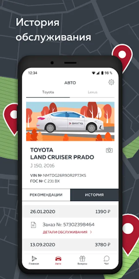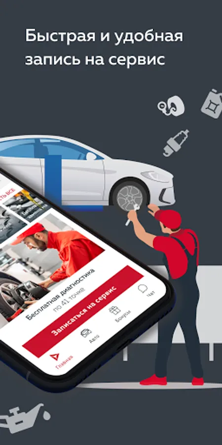 Our application allows you to quickly find the nearest car service, make an appointment for repairs online, see the service history, receive personalized offers, leave reviews, invite friends and much more.