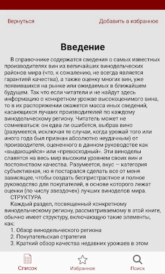 The wine regions, whose products are most widely represented in wine shops, are described in much more detail than regions whose wines are rarely found in the United States or are not exported here at all. Accordingly, the largest place in the book is given to wines and winemakers of Bordeaux, Burgundy, Champagne, Alsace and the Rhone Valley in France; Piedmont and Tuscany in Italy; as well as California, because these areas produce the greatest wines in the world. Each section provides a detailed description of the most and least successful producers of the region, as well as the most valuable wines of the region.