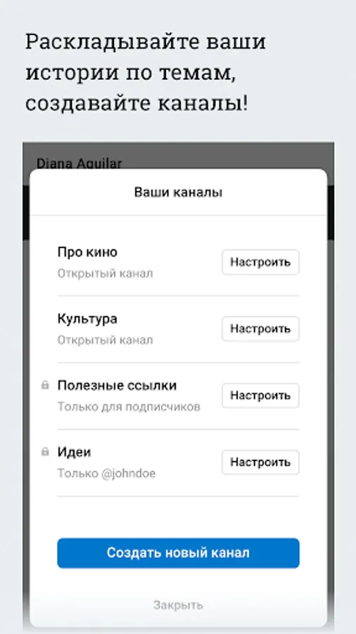 Organize your posts by topic by creating channels. Channels can be private or public.