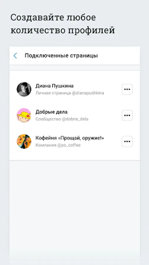 Find and subscribe to interesting pages, companies, communities, authors and see their publications in your feed.