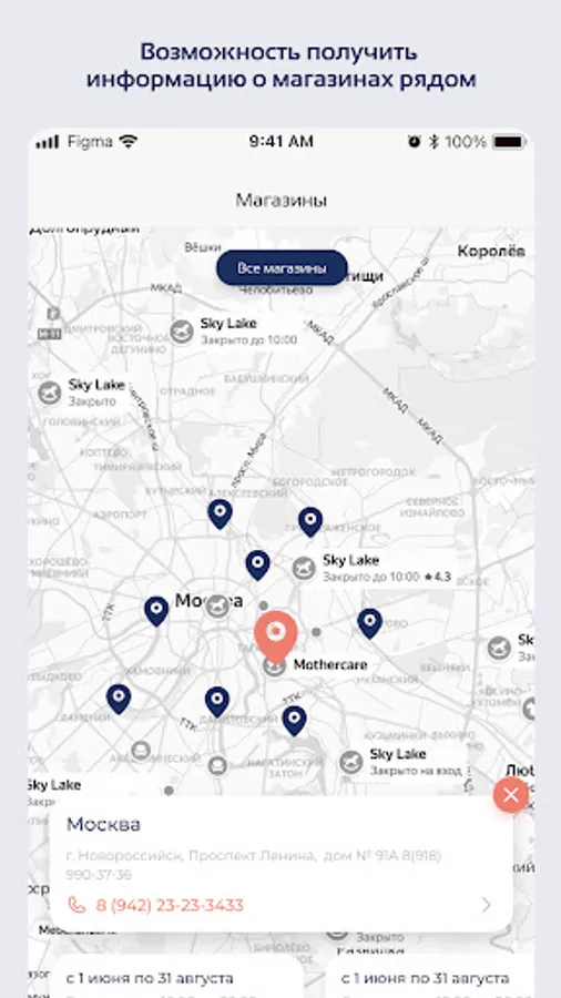 Shopping navigation will help you find the nearest store and get directions, clarify the mode of operation or ask your question to the store employee by phone from the application.