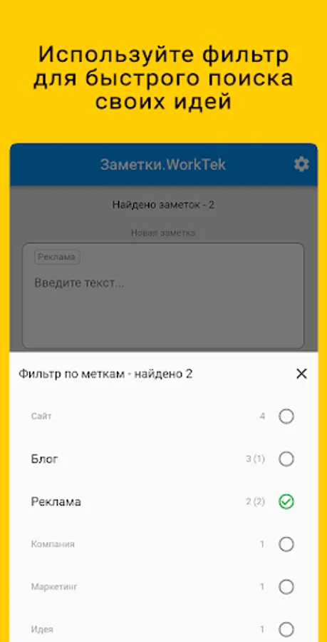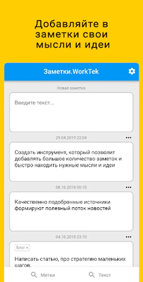 A separate application for managing notes both in the WorkTek platform and without it. Allows you to record thoughts and ideas and organize them using tags. Use the filter by tags or keyword search to quickly find the desired notes.