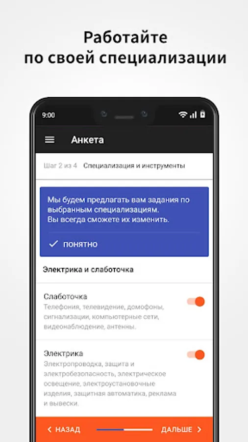 Work in your area of specialization in your free time, complete tasks, and earn money.