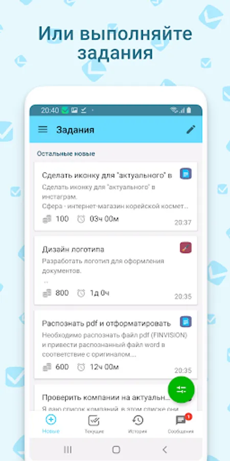 An application from the popular Workzilla exchange will help you quickly find a remote job or vice versa - hire an assistant for business or personal matters. Customers place a variety of assignments on Workzilla: from “buy tickets for a match” to “translate text from Hindi.”
