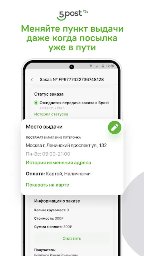 5Post is a delivery service for goods from online stores and marketplaces. Now you can receive your orders at pick-up points and parcel lockers located in Pyaterochka stores located as close as possible to your home.