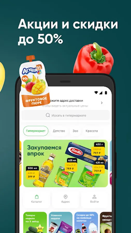 Take advantage of free delivery of food and pet supplies to your home, office and country house, discounts and promotions. Order groceries and other goods without leaving your home, online in the mobile application.