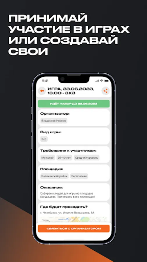 In the Play section, find partners to play basketball, create a team or join an already created team for joint training, games and participation in championships.