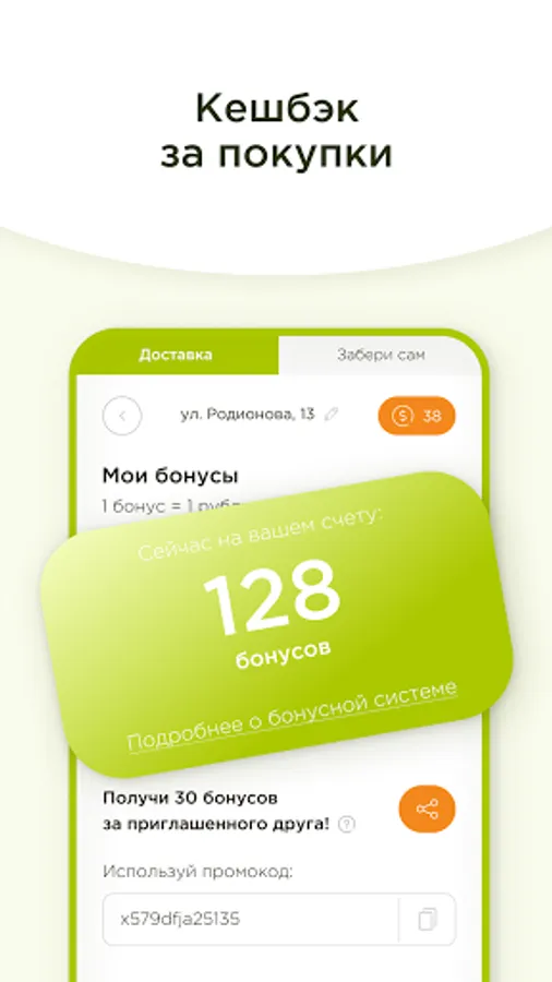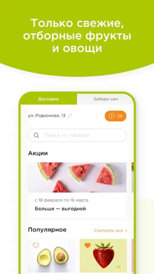 We deliver fresh fruits, vegetables and other healthy products to your home. We accrue cashback from each purchase. We give bonuses for recommending a service.