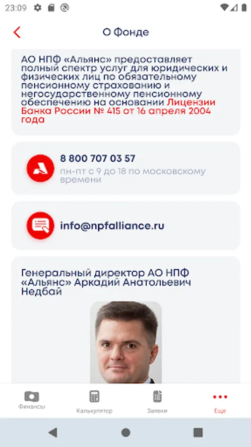 Application of JSC NPF "Alliance" - savings management, replenishment of accounts, conclusion of contracts