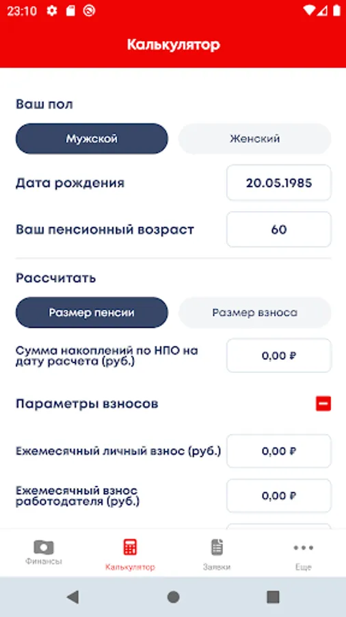 • Calculate the amount of pension and the amount of contributions using the pension calculator