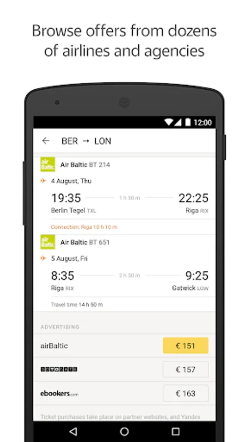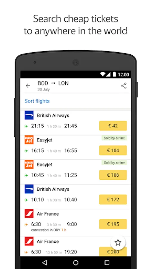 - Search for the best flight – filter offers by date, airline, airport, connections, and price.