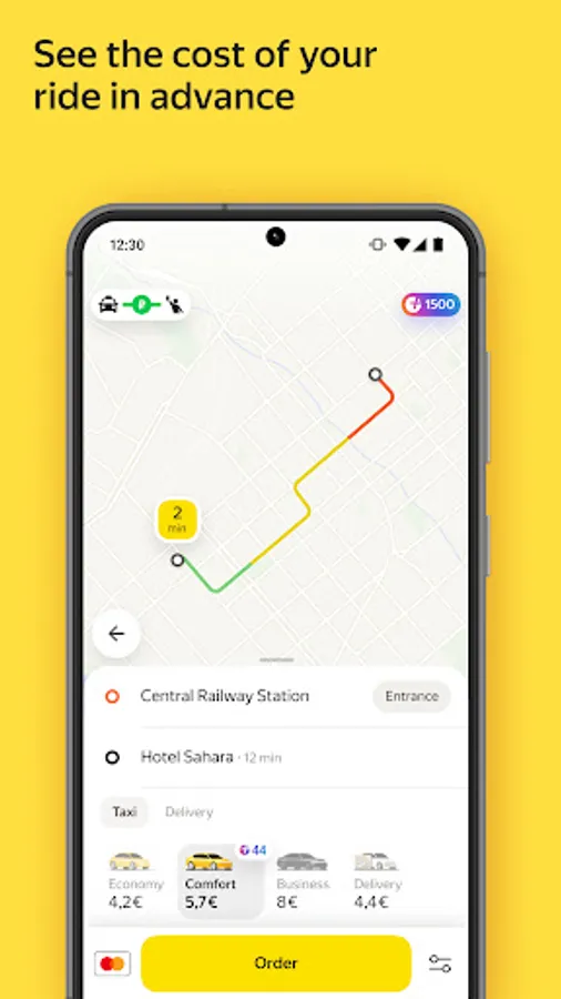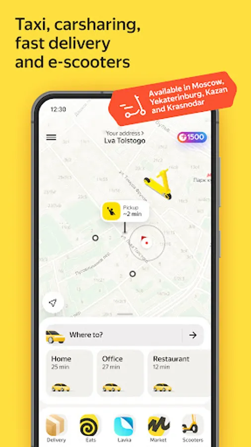 Yandex Go uses smart algorithms built on live traffic data to connect riders with drivers who can reach them fastest. Depending on your location, the app will also suggest alternative pickup points to help lower your fare.