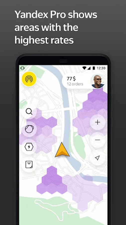 See where the most orders are. Yandex Pro (Taximeter) displays a map that highlights the places with the highest demand. High demand means higher rates, so orders originating from those places pay more.