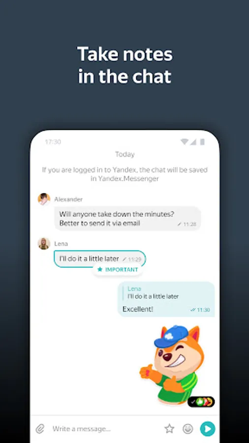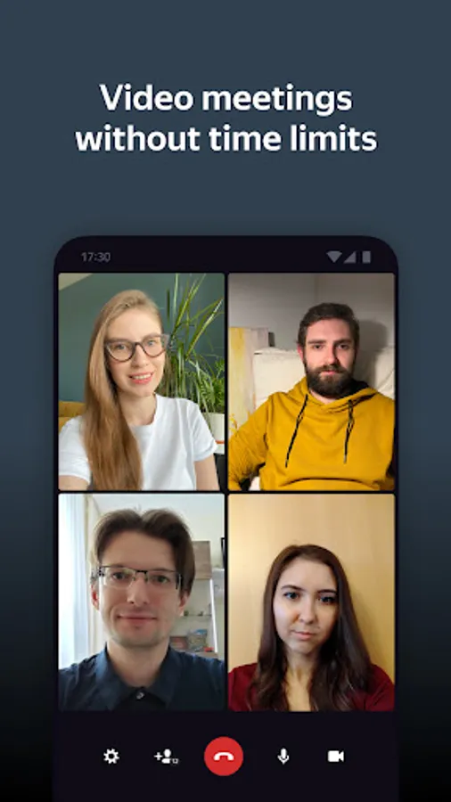 Yandex.Telemost lets you set up video meetings by link. Organize work conferences, chat with family, and host video parties in Yandex.Telemost. There are no time limits. You can chat for as long as you want without worrying that the meeting will end soon.