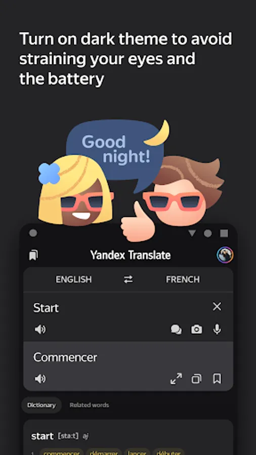 • Learn new words and their meanings through usage examples in the app’s dictionary (available for most of the currently supported languages).