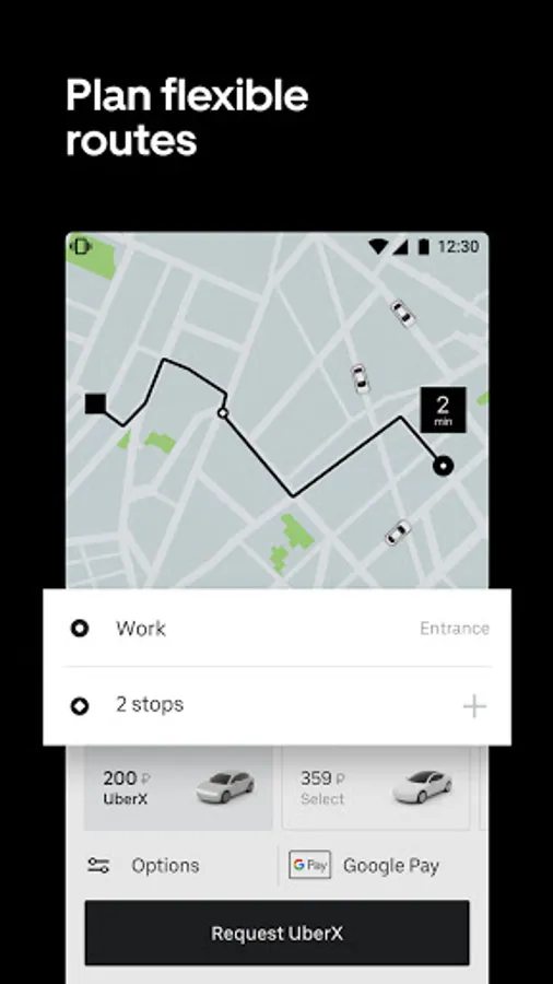 Stop at the store or drop off a friend along the way. You can enter up to 3 addresses before your destination when requesting a ride, and the Uber Russia app will map the optimal route and show you the price upfront.