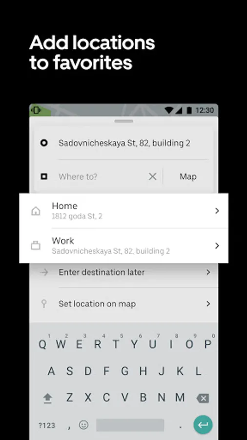The app always shows the easiest way to reach your taxi or pickup point. Any address or point on the map can be added to your Favorites. They'll be shown as buttons on the ride request screen so you can save time by not having to enter the address manually. The app also suggests where the best pickup spots are (normally within a 2-3 minute walk) to make your trip even faster and more affordable.