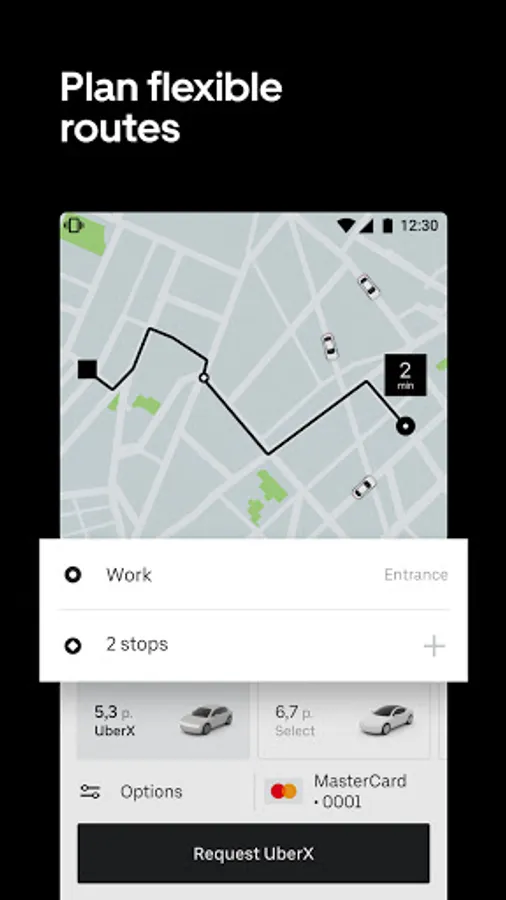 Request a single ride with multiple stops. Now on the way home you can swing by the store or drop off a friend. Enter up to 3 addresses when requesting the ride, and the Uber BY app will map the optimal route for the driver and show you the price upfront.