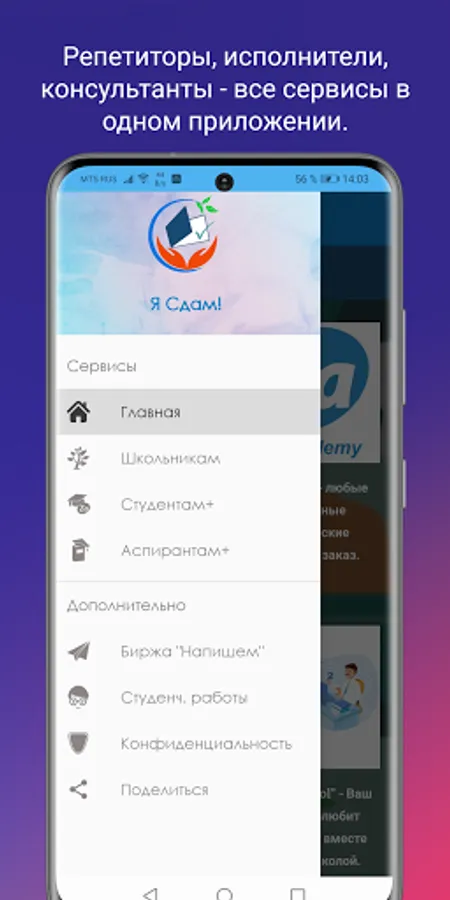 It is a mobile portal of time-tested, reliable learning assistance services for schoolchildren, undergraduate and graduate students.