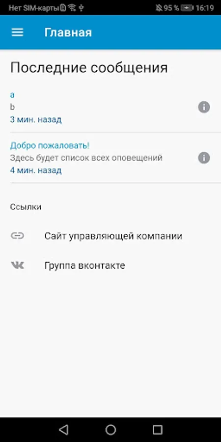 4. Quick links to the website of the Management Company, as well as to the Vkontakte group.