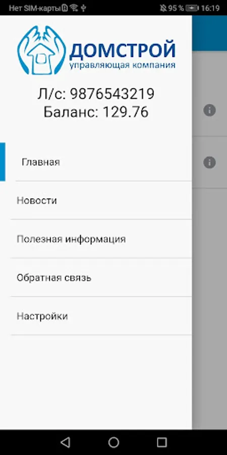 A mobile application for residents of houses managed by the Domstroy Management Company. The main functions of the application: