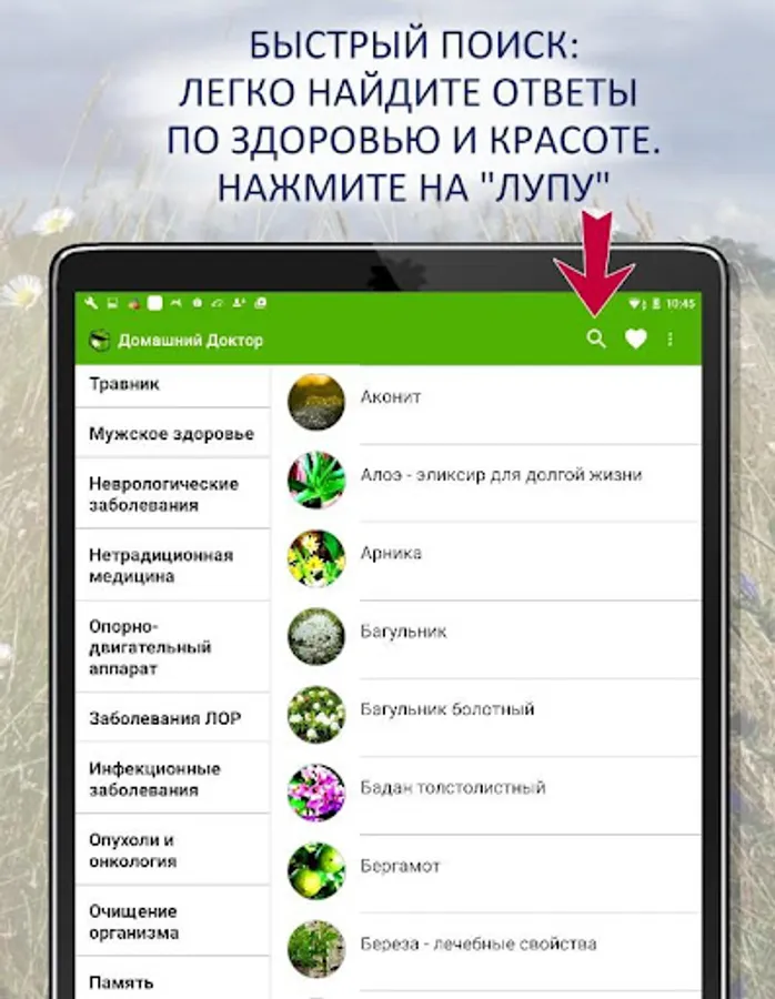 🏸 In the program you can find about the disease: Abscess (abscess), Avitaminosis, Adenoidia, Alcoholism, Allergy, Angina, Anemia (anemia), Arrhythmia, Arthritis, Asthma bronchial, Atherosclerosis, Insomnia, Ear Diseases, Warts, Bronchitis, Varicose veins , Vitiligo, Inflammation of the female genital organs, Inflammation of the lungs (pneumonia), Hair loss, Sinusitis, Gastritis, Hemorrhoids, Hepatitis (inflammation of the liver), Hypertension, Hypotension, Eye diseases, Worms, Headache, Fungal skin diseases, Depression, Diabetes insipidus Dee sugar bet, Diathesis, Dysentery, Diphtheria, Jaundice, Gallstone disease, Constipation, Goiter, Toothache, Women’s health, Heartburn, Impotence, Stroke, Coronary heart disease, Cough, Menopausal disorders, Whooping cough, Colitis, Measles, Nosebleed, Leukemia , Malaria, Mastitis, Flatulence, Corns, Menstrual irregularities, Metabolism, Digestion, Neuralgia, Neurosis, Urinary incontinence, Nephritis (inflammation of the kidneys), Obesity, Burns, Osteochondrosis, Poisoning, Lack of appetite, Pancreatitis, Periodontal disease ( , P relapses, Diarrhea, Renal stone (urolithiasis) disease, Pressure ulcers, Prostatitis, prostate adenoma, Colds, runny nose, Psoriasis, Radiculitis, Gastric cancer, Skin cancer, Lung cancer, Uterine cancer, Wounds, Stretching, dislocation, Rheumatism, Erysipelas, Heart failure, Stomatitis, Tuberculosis of the lungs, Acne, acne, Fatigue, fatigue, Fibromyoma, Furunculosis, Cholecystitis, Cirrhosis, Cystitis, Eczema, Epilepsy, Peptic ulcer, Barley.