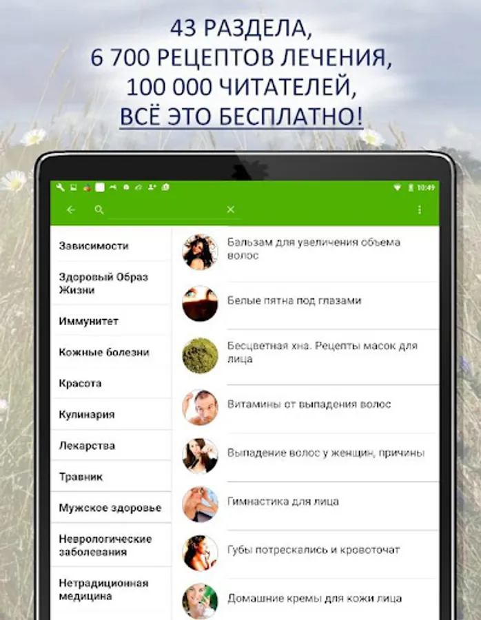 We have combined traditional and traditional medicine. In the application you will find: a description of diseases, symptoms, signs, prevention, medications and treatments.