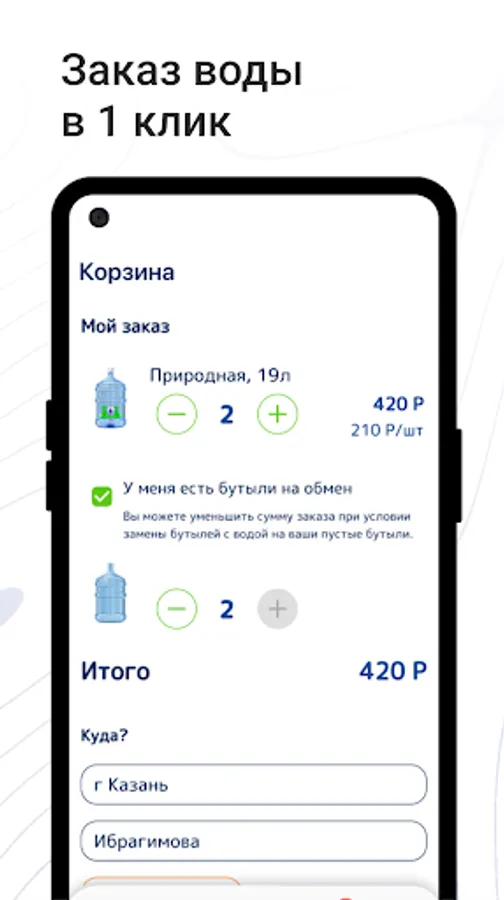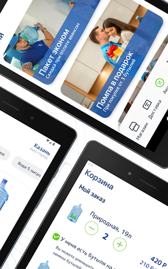 The fastest and most convenient way to order water in Nizhny Novgorod, Kazan, Cheboksary, Novocheboksarsk, Yoshkar-Ola.