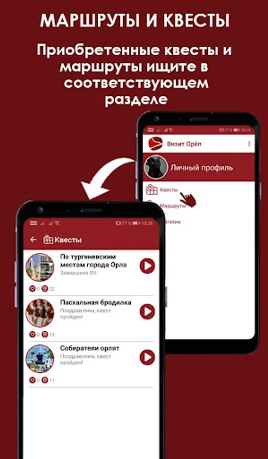 The official application for the portal visit-orel.ru, allows the passage of quests and routes.