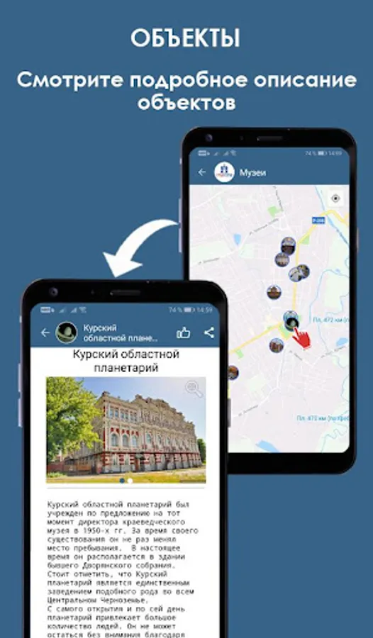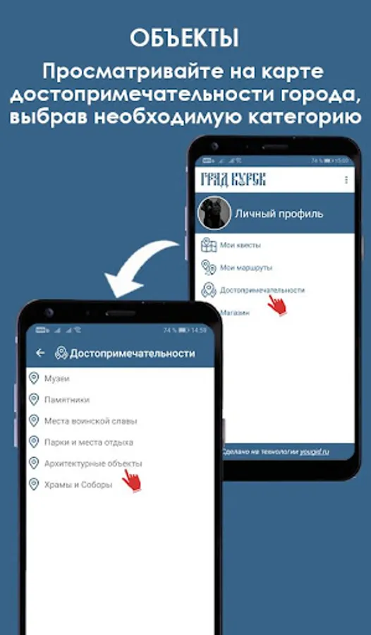 The application "Grad Kursk" - an interactive guide that allows you to learn about the sights of Kursk, without spending a lot of time and effort.