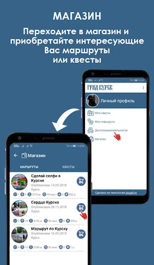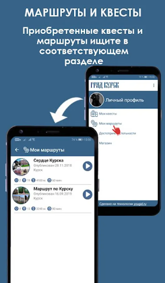 In addition to the routes, the application offers you to complete quests. Each quest is dedicated to a specific topic and is a route where you can find out each subsequent tag only by solving an easy task. This will allow you not only to get acquainted with the various sights of Kursk, but also to do it in a rather interesting way.