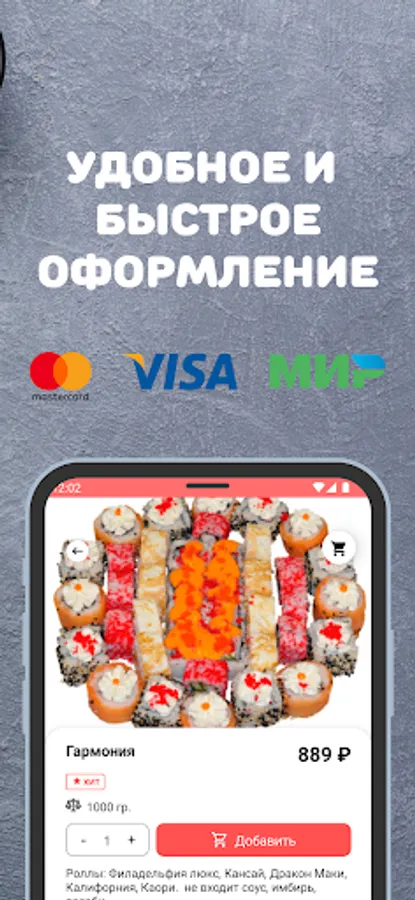 Simple and convenient mobile application for ordering food in Anzherke. Now, a full menu of Banzai Sushi and sushi delivery in Anzhero-have in your pocket. Order delivery is possible in 1 minute when connected to the Internet.