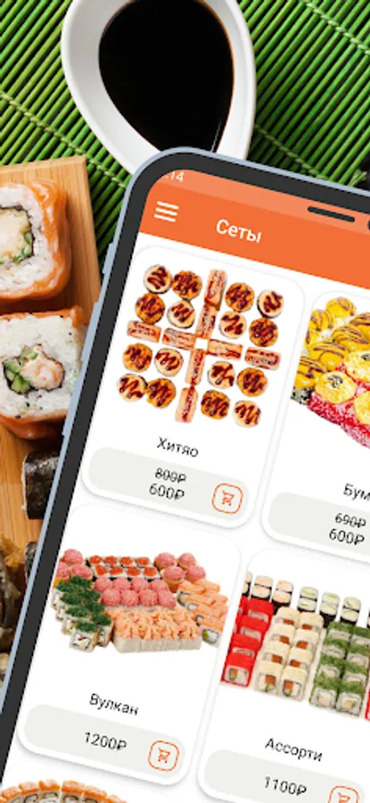 With our app you can order sushi in the city of Nizhnevartovsk, Nizhnevartovsk Pizza, walky-talkies, salads, main course, desserts and many other dishes.