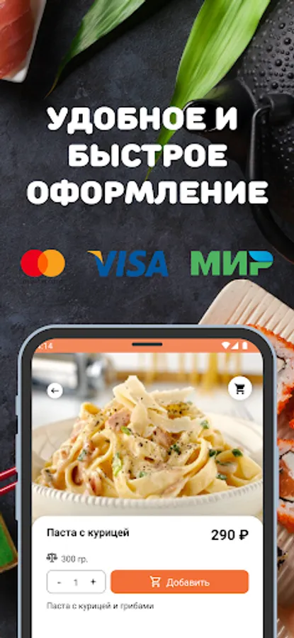Simple and convenient mobile application for ordering food in Nizhnevartovsk. Now, a full menu of Sushi Paradise and sushi delivery in Nizhnevartovsk have in your pocket. Order delivery is possible in 1 minute when connected to the Internet.