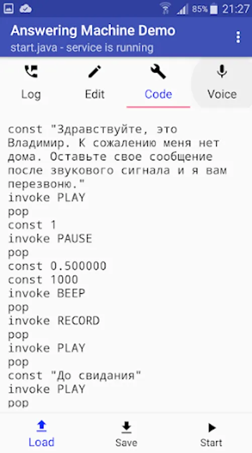 There is the only Answering Machine for Android that REALY TALKS to the line during a phone call. You can take incoming calls, record voice messages, enter tone dialing, and answer all of this with pre-recorded voice phrases or beeps using Java script program.