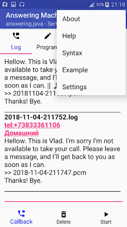 Thank you for using the Answering Machine Application.