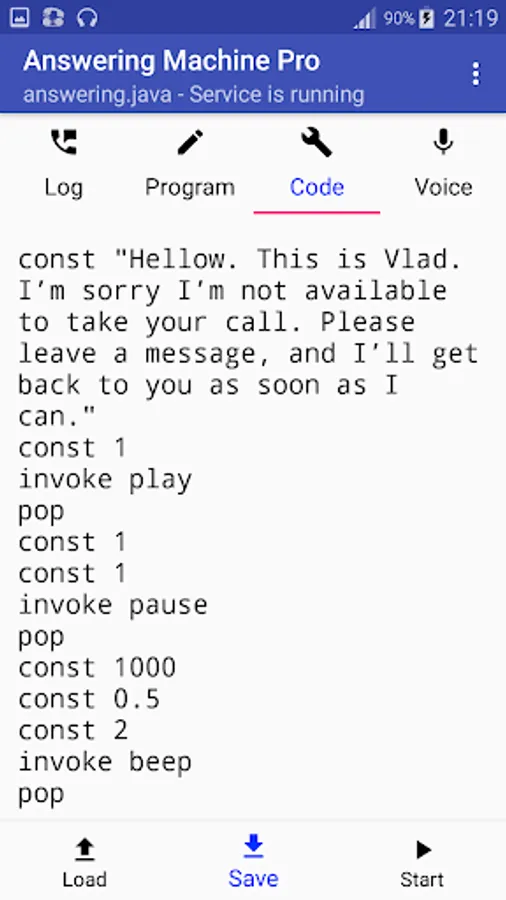 There is the only Answering Machine for Android that REALY TALKS to the line during a phone call. You can take incoming calls, record voice messages, enter tone dialing, and answer all of this with pre-recorded voice phrases or beeps using Java script program.