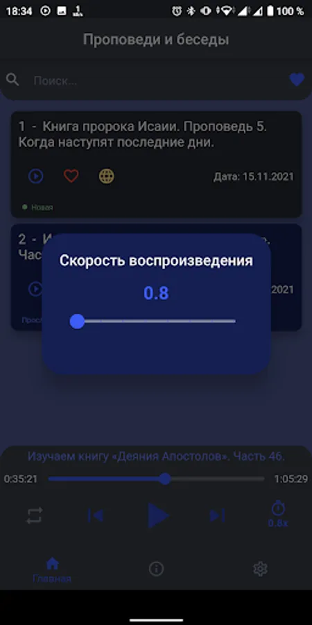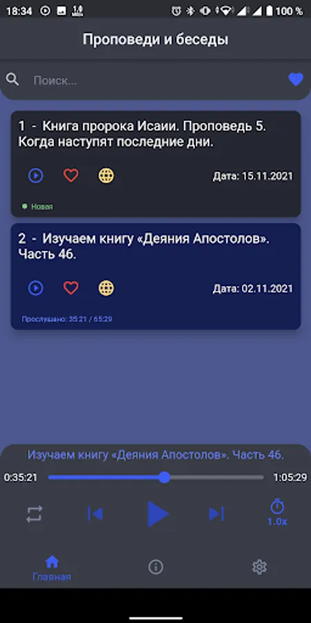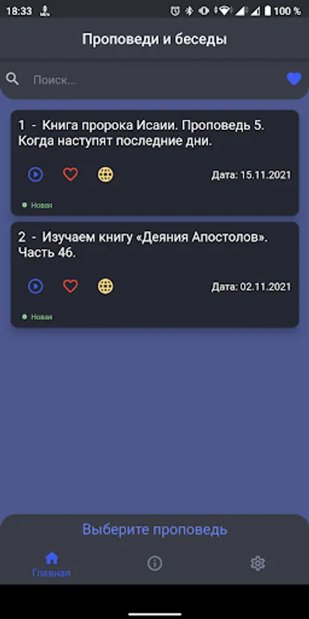Friends, this is an application with the sermons of Denis Vladimirovich Samarin in audio format. This is an application with a built-in player, adding to the favorites list, convenient search by name and by category. There is also the possibility of changing the theme of the application and other features.