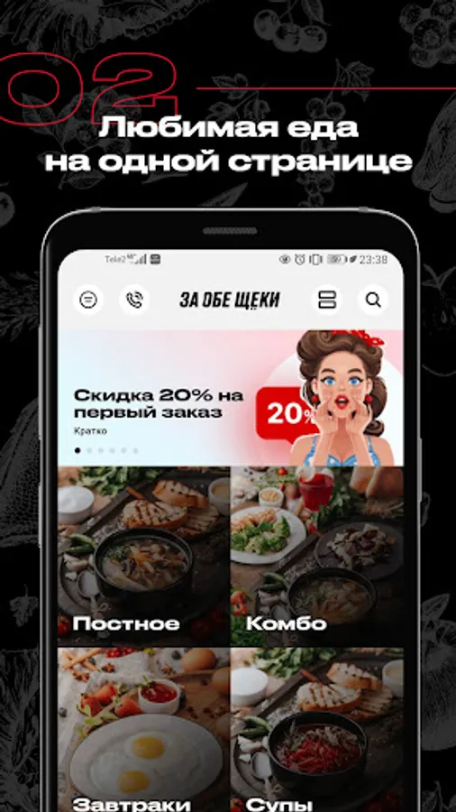 Za Oba Cheeki is a service for delivering ready-made homemade food to your home or office in Moscow. In our application you can order delivery