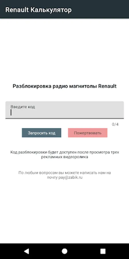 This application will help you obtain the security activation code for your Renault and Dacia car radio receiver after power loss.