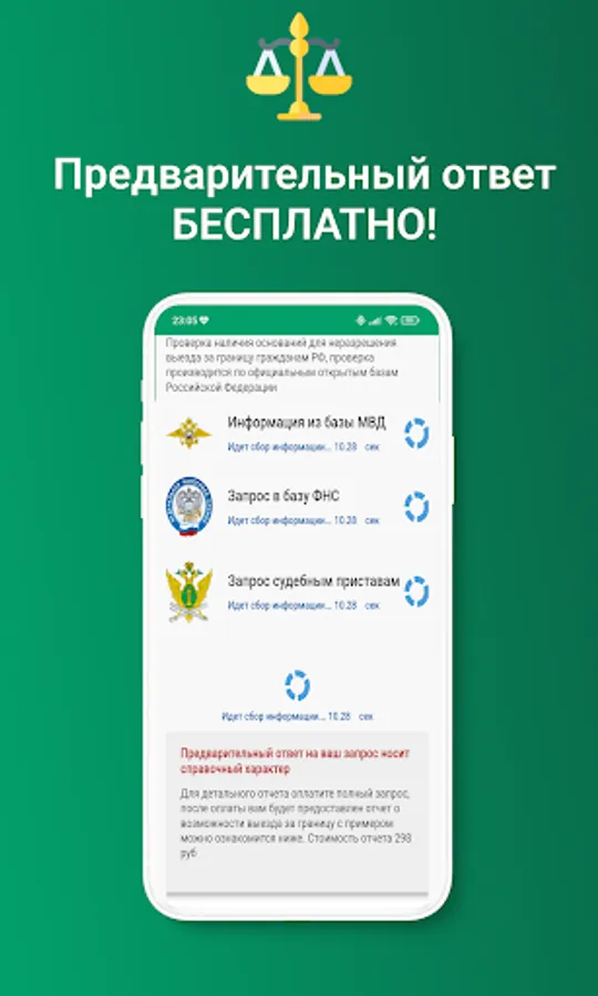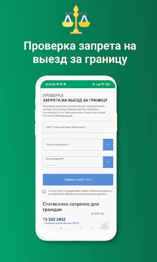 For self-check, fill in the data specified in the application, pay the fees according to the tariffs and the service will conduct a full check of all debts for all bases. Your e-mail will receive a response with the result within a few hours. It is also possible to check if it is blocked to travel abroad through public services, we highly recommend checking both in public services and in the application for finding restrictions on traveling abroad.