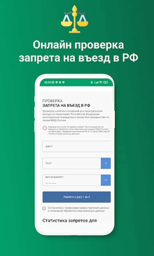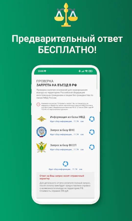 To understand whether you have a restriction on entry into the territory of the Russian Federation, we make a request to the open bases of the Russian Federation for entry into the Russian Federation. If obstacles to entry are found, we will report this in a summary report.