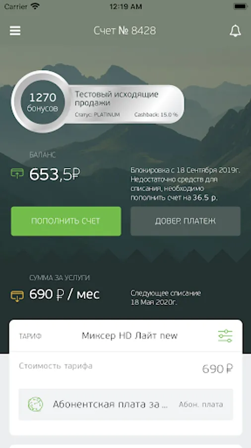 We want to make it convenient for you to know about the connected services, replenish your account and receive feedback.