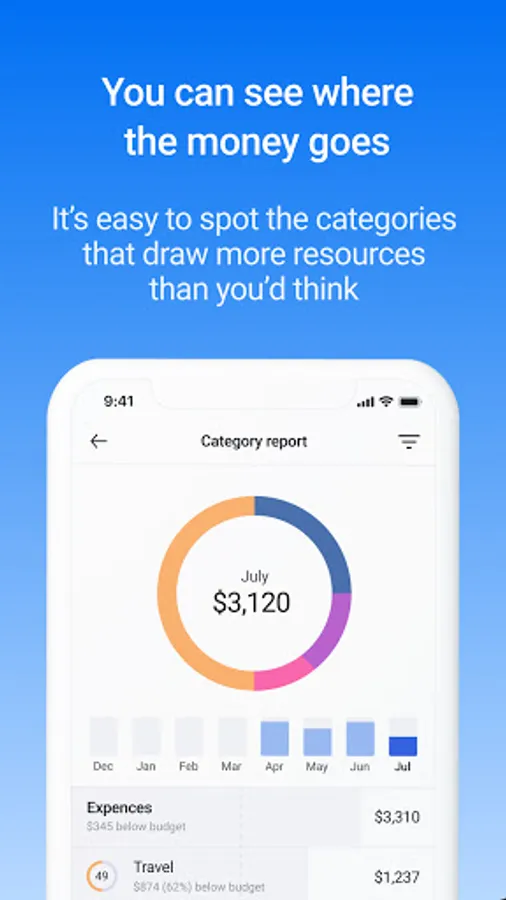 With Zenmoney, you can see where your money is going. Spending statistics offer insight on how much you need for regular bills, and how much you can spend on coffee, books, movies and travel. Payment forecasts spotlight unnecessary or costly subscriptions and remind you about important recurring payments. Together, these features can help you to set your financial priorities and avoid expenses that are no longer needed.