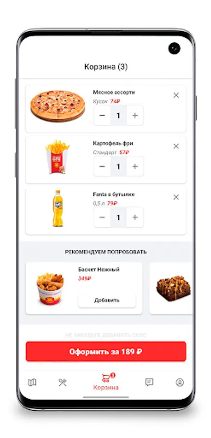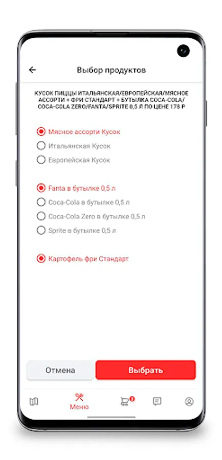 To pay for the order in the application, use online payment or a bank card. When ordering delivery or pickup in the application, you can choose to pay by card or pay in cash upon receipt of the order.